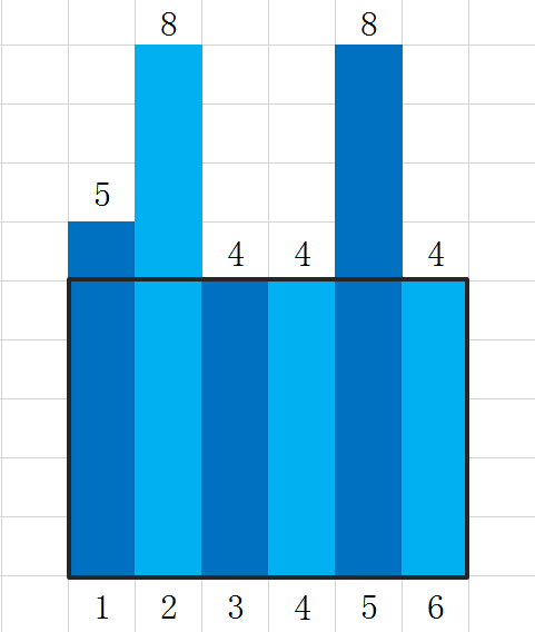afy决定在上面找一块尽可能大的矩形放置广告牌。我们假设每个建筑物都有一个高度,从左到右给出每个建筑物的高度H1,H2…HN,且0 < Hi ≤ 109,并且我们假设每个建筑物的宽度均为1。